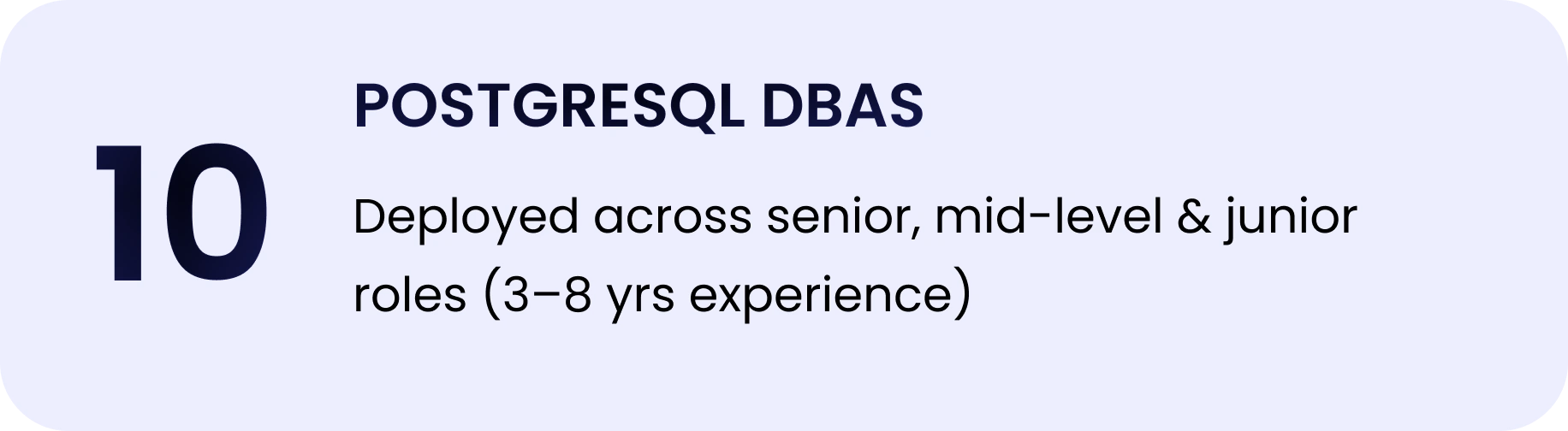 SheWork followed a rigorous multi-step process to deliver the right PostgreSQL talent. Candidates went through preliminary screening and a technical assessment with an evaluation matrix across administration, migration, performance tuning, and compliance. Only benchmark-cleared profiles moved to client interviews, ensuring quality shortlists and faster closures.