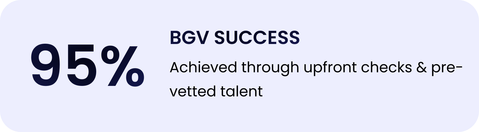 The hiring process faced a few critical roadblocks. On average, client feedback was delayed by 7–10 days, slowing down closures. Nearly 30% of shortlisted candidates dropped out many due to better compensation packages, hybrid work preferences, or relocation issues. Additionally, 1 in 5 profiles failed background verification, leading to last-minute setbacks and rework.