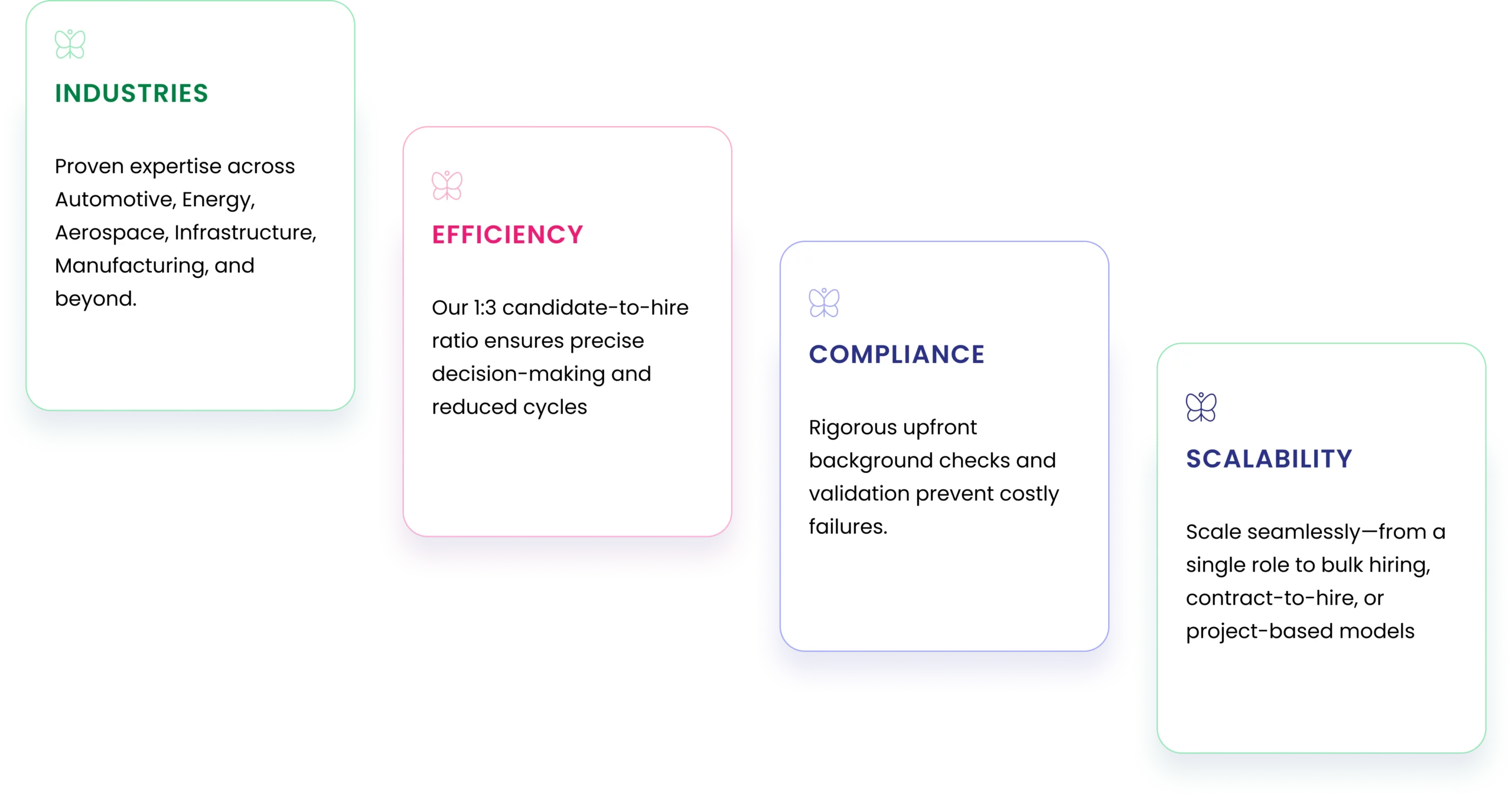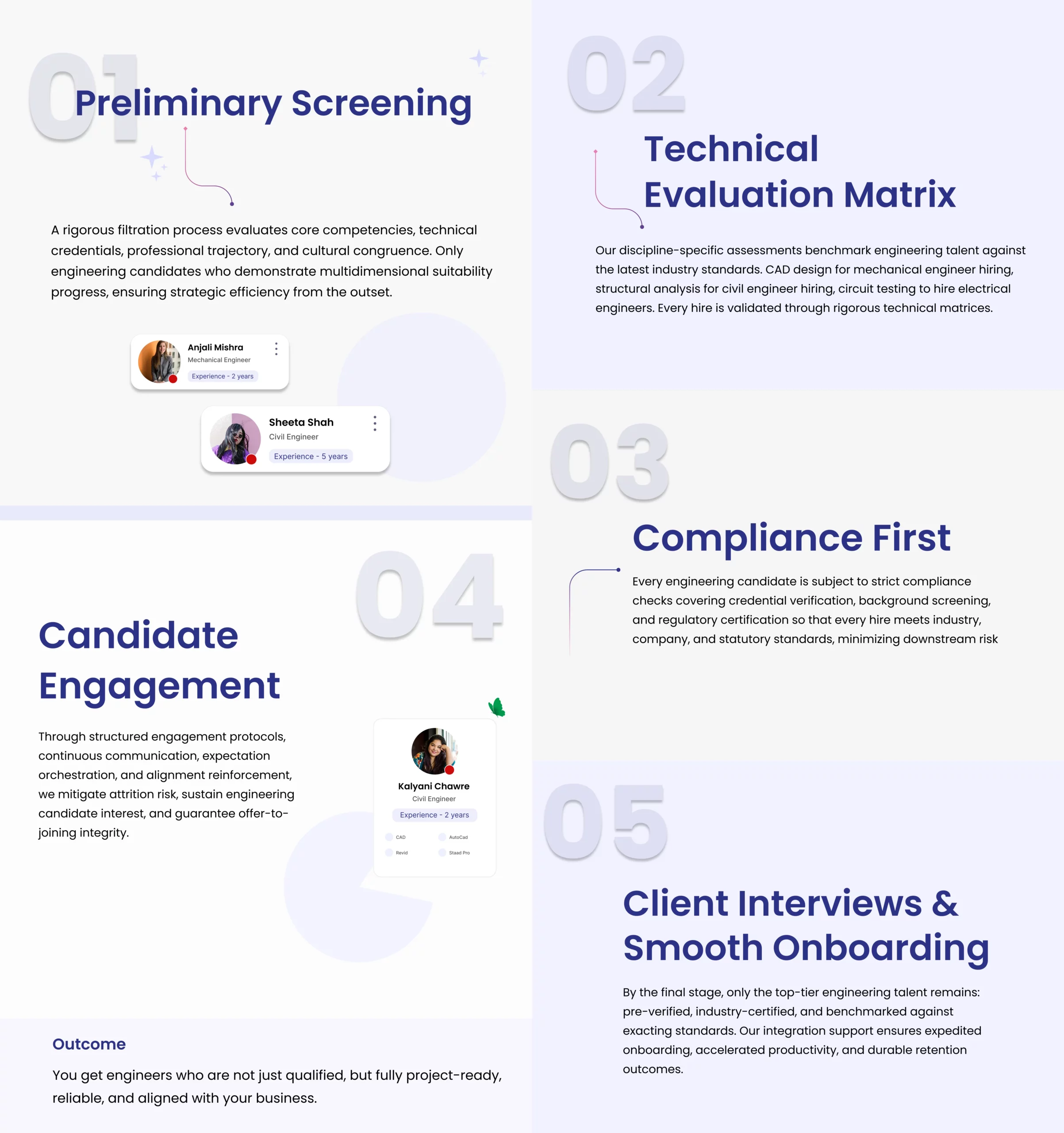 ready to deliver from day one. Our structured engineering staffing solutions combine speed, precision, and