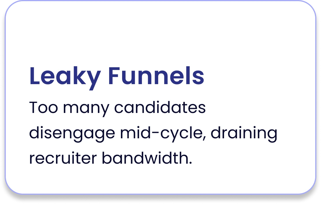 Too many candidates disengage mid-cycle, draining recruiter bandwidth.