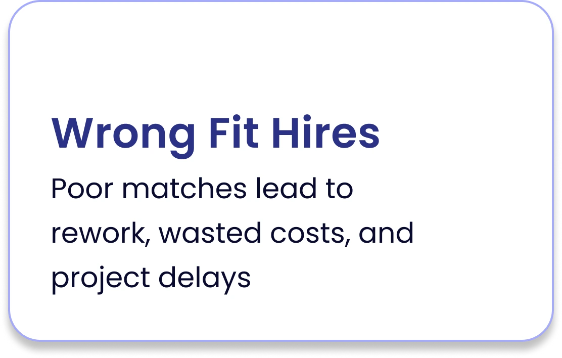 Today’s engineering recruitment is riddled with inefficiencies that stall growth and execution. Lengthy sourcing cycles and weak candidate engagement extend timelines and drain recruiter bandwidth. Skilled engineers often slip away to faster-moving competitors, leaving critical roles unfilled. Instead of driving progress, traditional hiring creates costly delays, compliance risks, and lost opportunities.