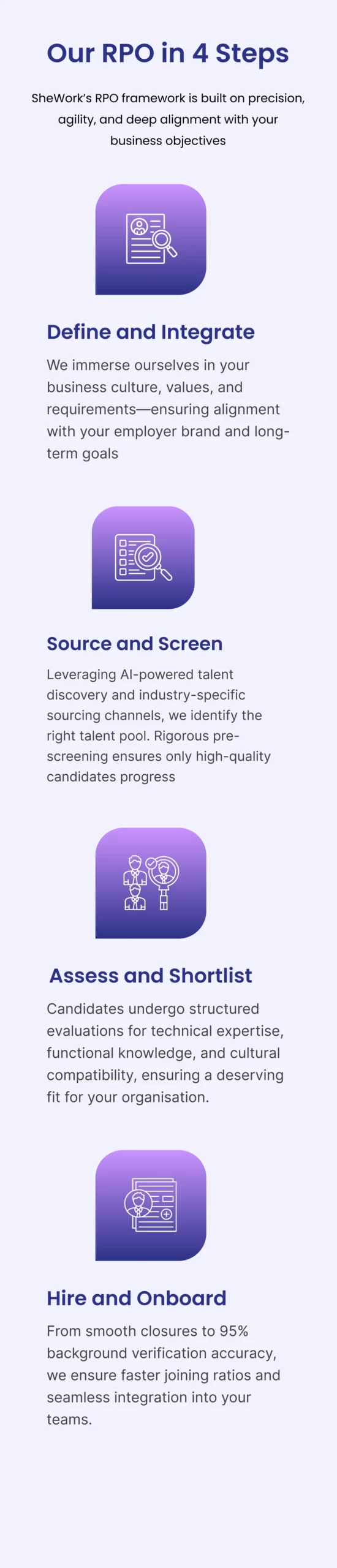 RPO with SheWork is not just about filling vacancies, it’s about building high-performing, future-ready teams that deliver business outcomes