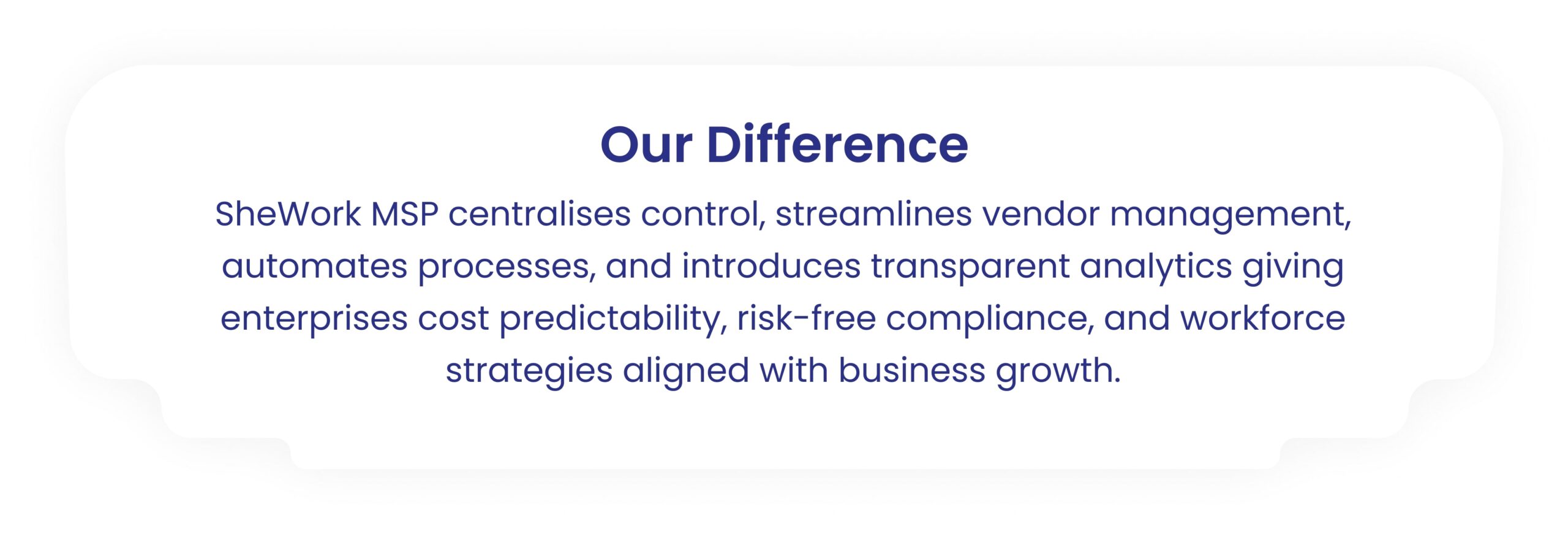 SheWork replaces this chaos with a single, tech-enabled MSP model, transparent, compliant, and diversity-driven.